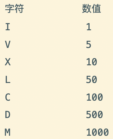 罗马数字包含以下七种字符: I, V, X, L,C,D 和 M。