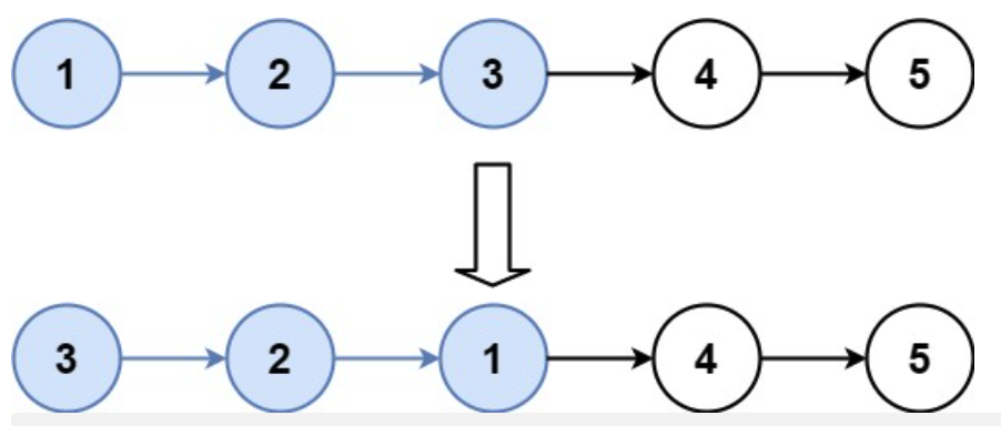 然后,每k个元素来一次上述操作,直到将全部链表遍历完毕。