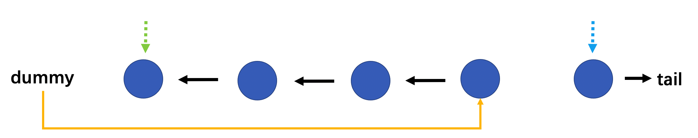 Tips:图中虚线是用于临时指向的指针,防止我们找不到该节点。
