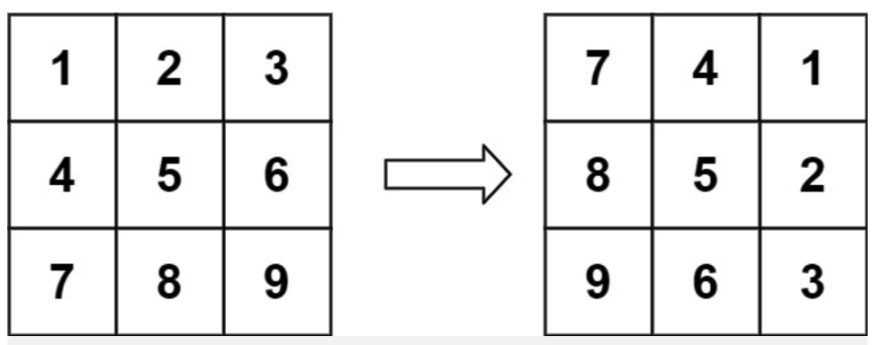 本题是一道经典的旋转矩阵的题,直接思考旋转90°会比较困难。我们可以将此拆分成两个步骤进行求解,即