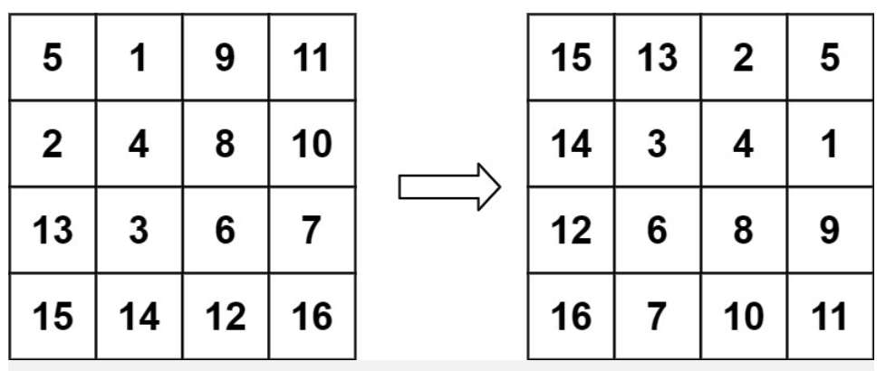 输入:matrix = [[5,1,9,11],[2,4,8,10],[13,3,6,7],[15,14,12,16]]