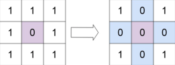 输入:matrix = [[1,1,1],[1,0,1],[1,1,1]]