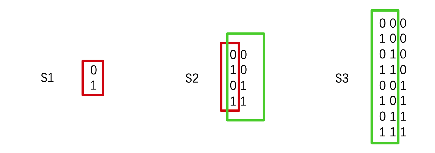 b. S(k+1)后一个部分:将 Sk 中的每个数开头补上0