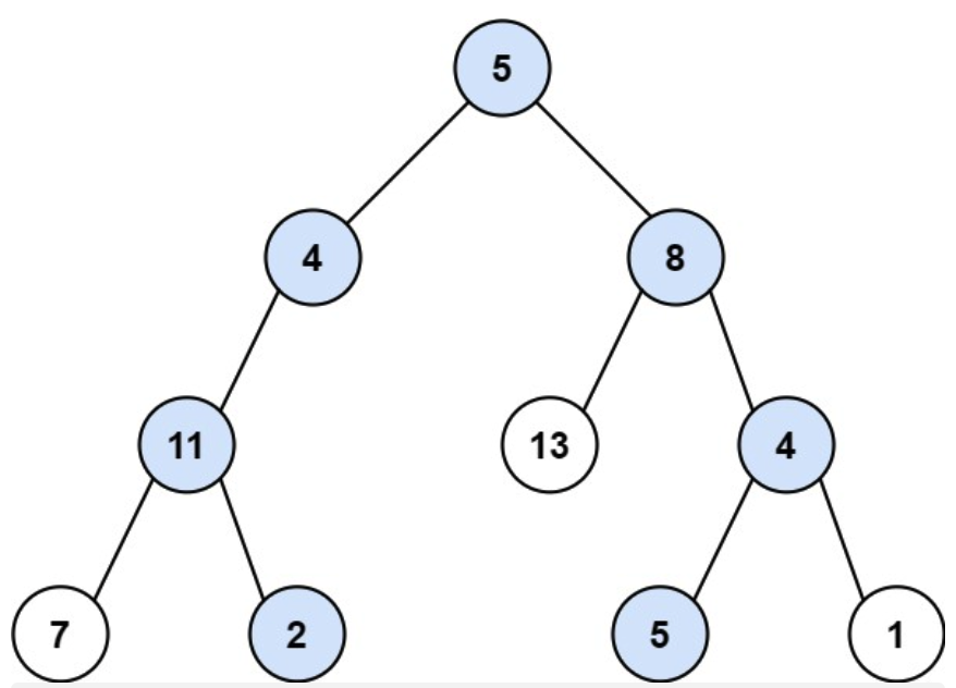 输入:root = [5,4,8,11,null,13,4,7,2,null,null,5,1], targetSum = 22