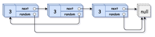 构造这个链表的 深拷贝。 深拷贝应该正好由 n 个 全新 节点组成,其中每个新节点的值都设为其对应的原节点的值。新节点的 next 指针和 random 指针也都应指向复制链表中的新节点,并使原链表和复制链表中的这些指针能够表示相同的链表状态。复制链表中的指针都不应指向原链表中的节点 。